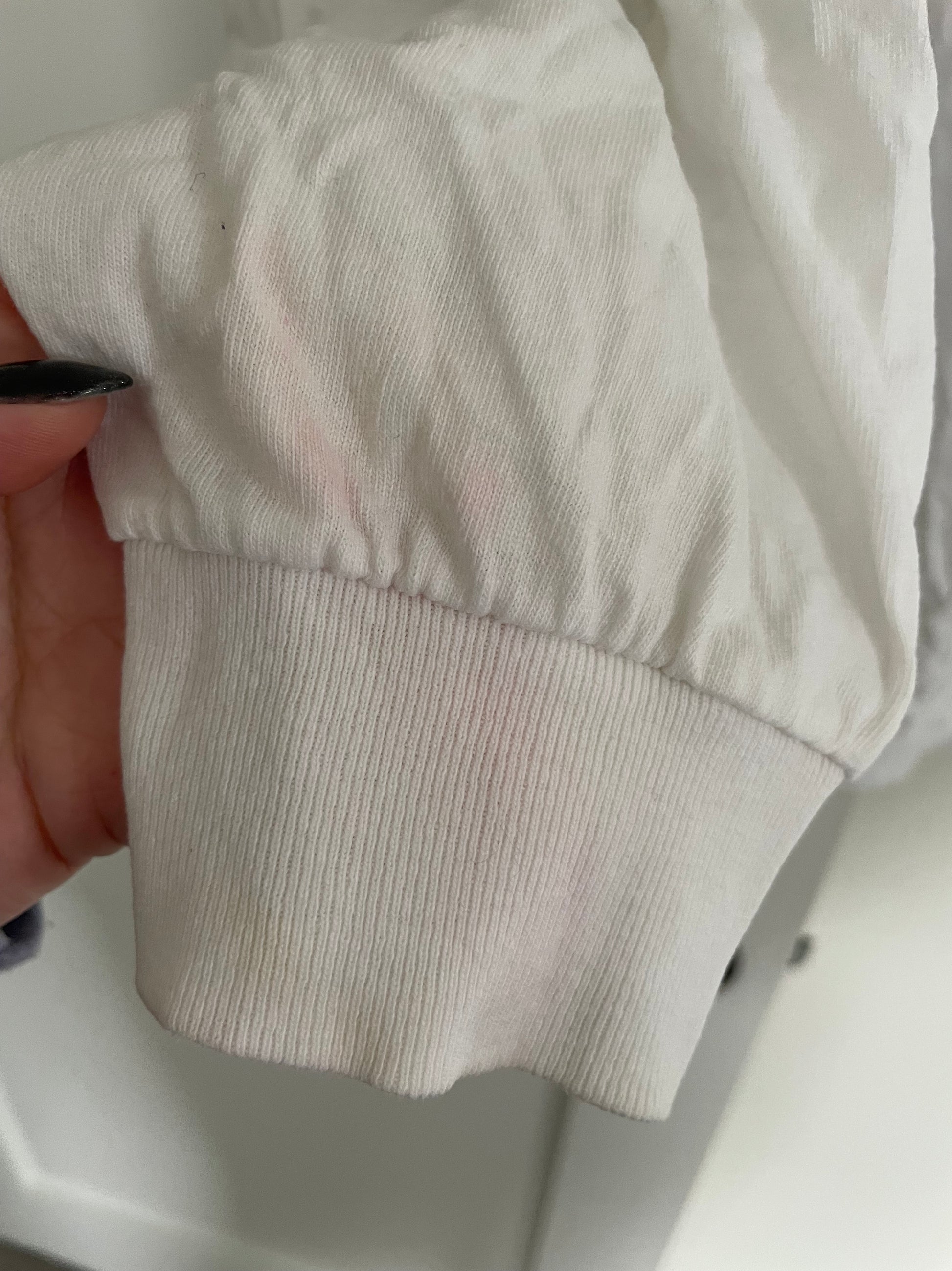 Labeled under John Galt for Brandy Melville. Large vintage racing graphic. Has some light pink staining on left sleeve cuff. Fits up to a size M/L.
