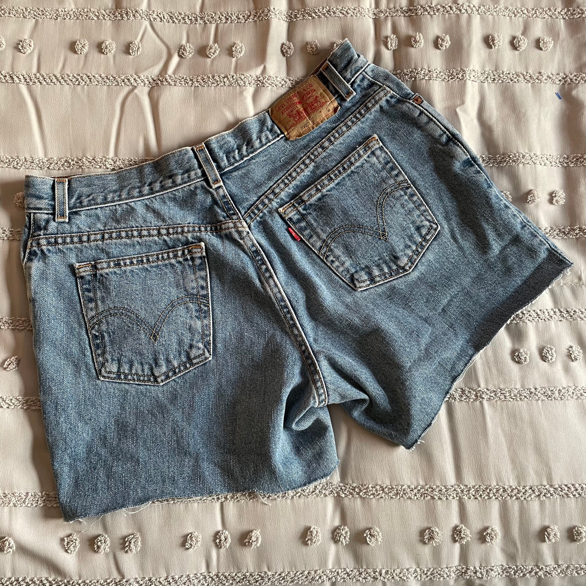Vintage Levi cutoff shorts from the 550 tapered style jeans. 100% cotton. Similar style shown in stock photo.